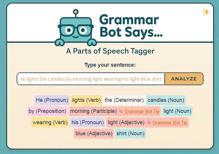 Whether you’re editing a sentence, prepping for a diagramming lesson, or just curious about how words behave, Grammar Bot helps you slow down and see the structure.